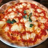 Tomato sauce, mozzarella fior di latte, and basil.